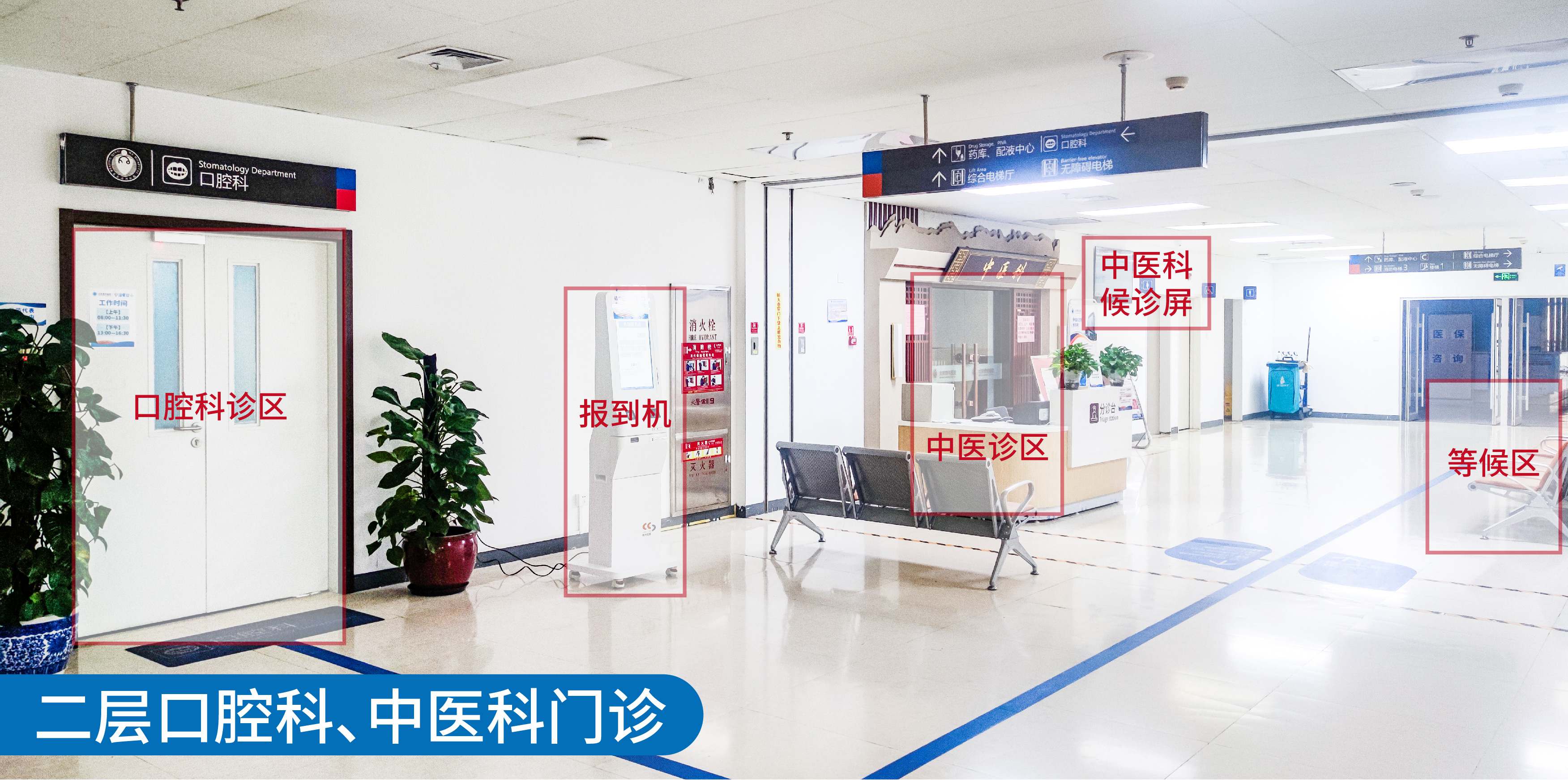 2、安心候诊:报到成功后,可在对应候诊区休息等候,请留意候诊屏信息及语音呼叫。院内已在各区域配备专属候诊屏,包括:一层综合门诊候诊屏、一层眼科候诊屏、二层综合门诊候诊屏、二层口腔科候诊屏、二层中医科候诊屏。