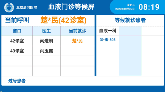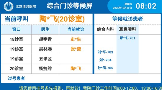 为提升就医体验,营造安静、有序、公平、透明的就诊环境,北京清河医院全新门诊分诊叫号系统已全面上线启用!此次系统升级是我院推进“智慧医院”建设、深化“以患者为中心”服务理念的重要举措,旨在通过技术赋能,从根本上改善就医环境,让您的看病过程更轻松、更从容。