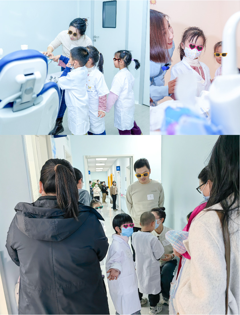 种植室里,孩子们好奇的观察专业设备,医务人员用通俗语言解释种植牙原理,消除大家对牙科治疗的恐惧。最受欢迎的当属“牙医实操”环节,小牙医们手持口镜,认真为同伴检查口腔,模仿医生的专业姿态叮嘱“要少吃甜食”,童真模样引得家长纷纷拍照记录。