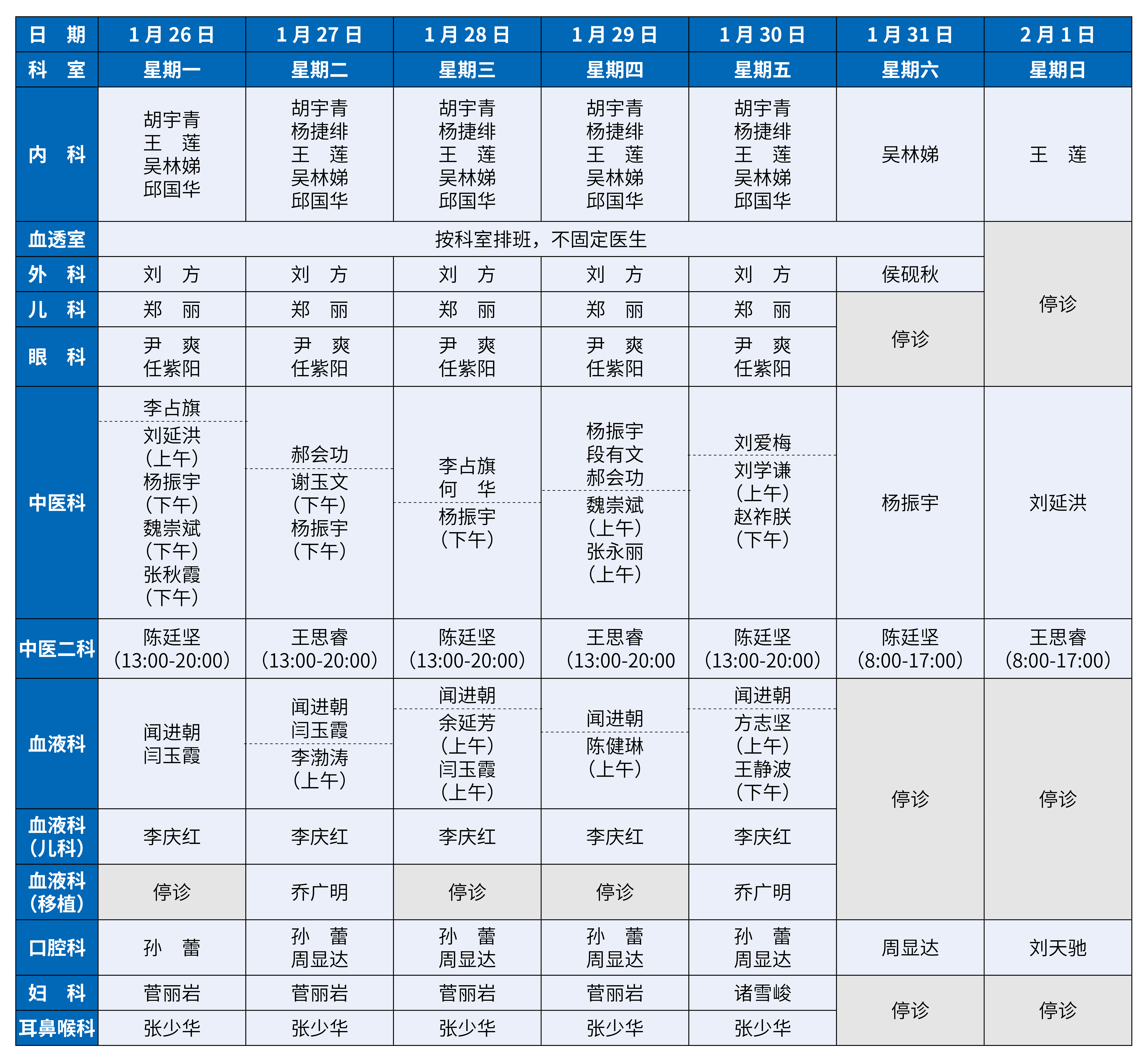 (2)由于医院工作安排造成医生排班临时调整不再另行通知,咨询电话:4008197999