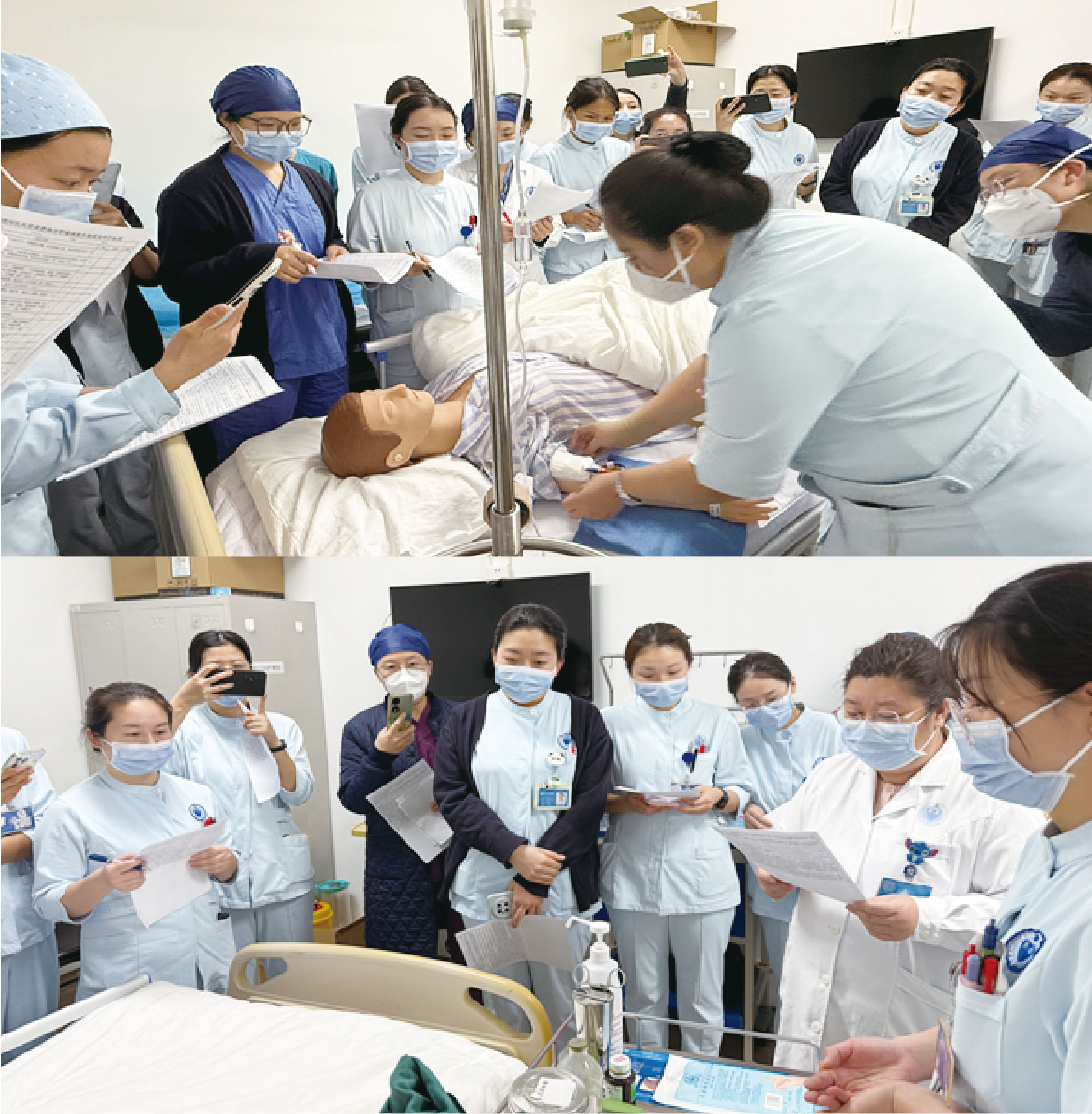 北京清河医院护理部组织留置导管静脉输液,无菌技术(四项)操作、PICC维护的培训,现场培训后录制视频,确保培训同质化。培训结束后,全体护士积极开展技能强化练习,并全员顺利完成科内考核,切实做到以训促练、以考促精。