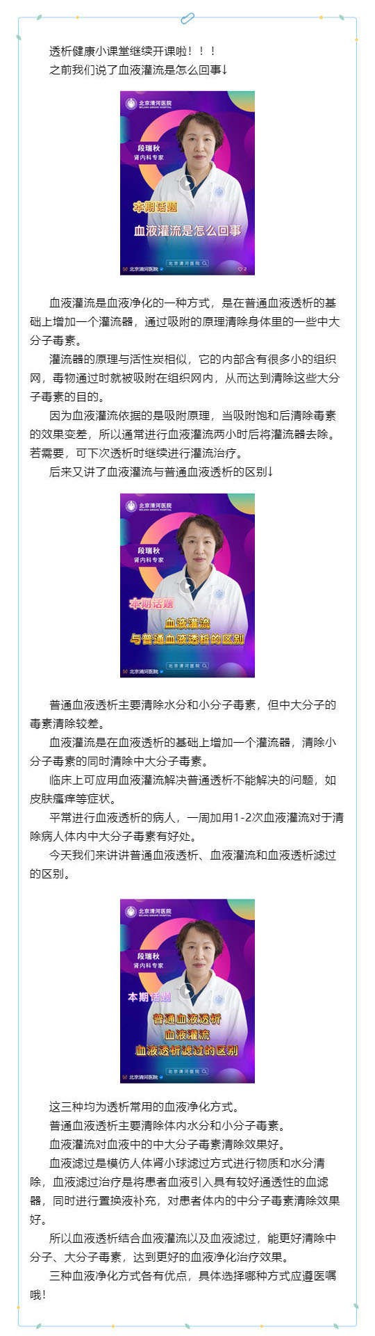 健康小站 | 普通血液透析、血液灌流和血液透析滤过的区别