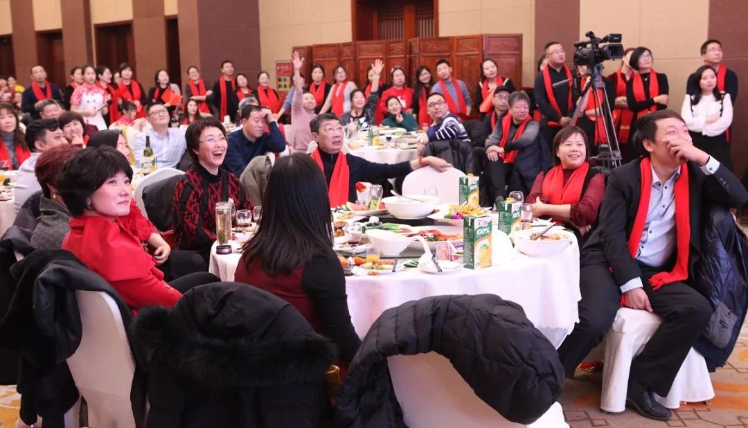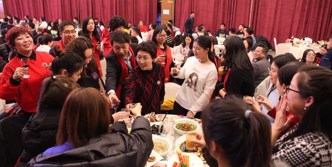 大家围坐在桌边,品尝香气四溢的美食美酒,举杯互致新年祝福,共同畅想着更加美好的2020。