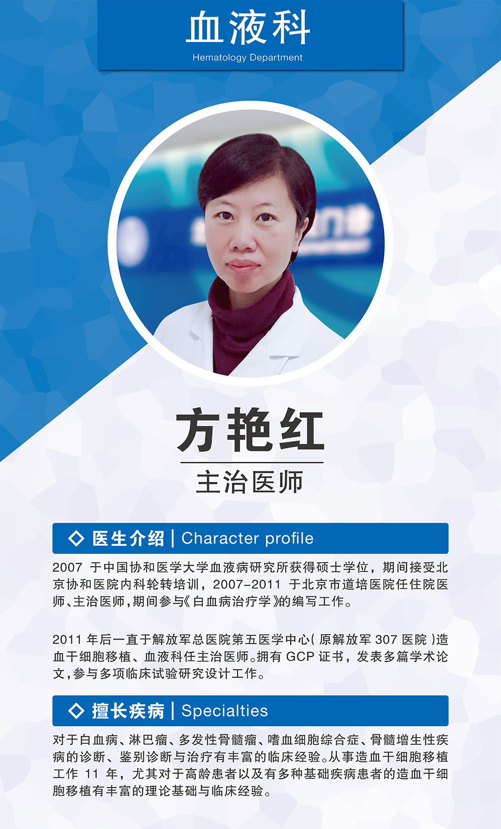 科室介绍:北京清河医院血液科,拥有多年三甲医院血液科工作经历的医师和专家,具有丰富的血液病专科理论基础与实践经验,对于血液科常见病、多发病、异基因造血干细胞移植、有丰富的临床治疗经验。