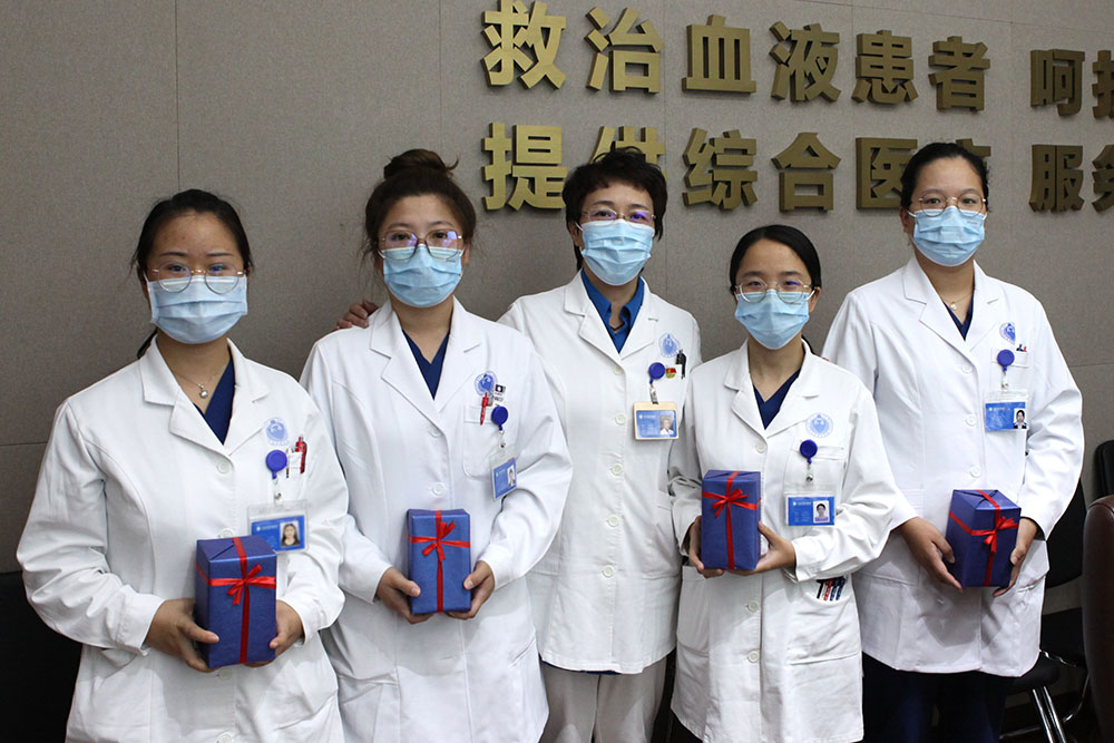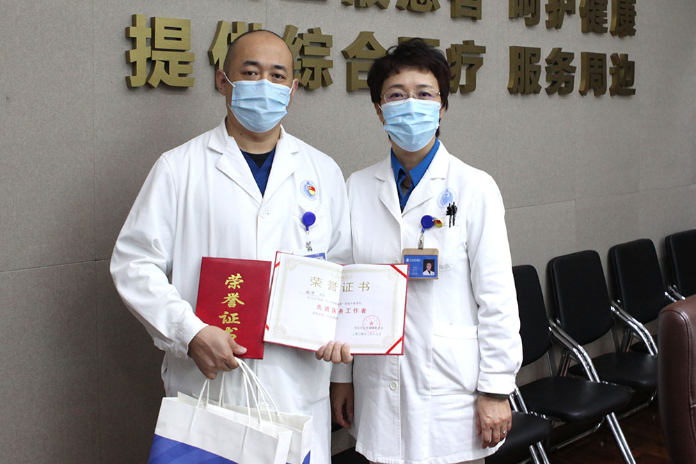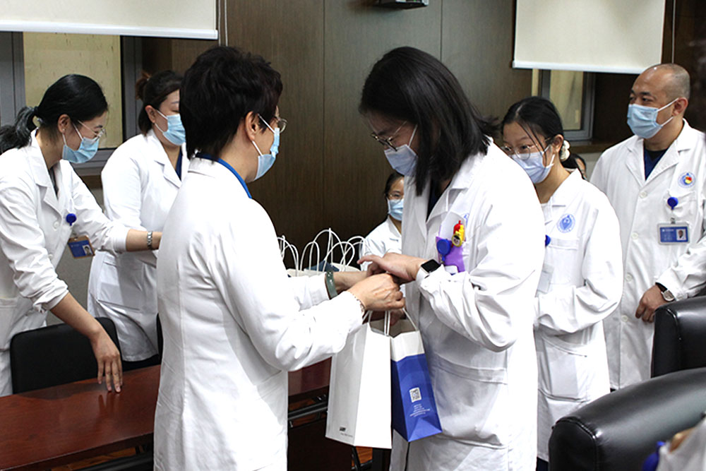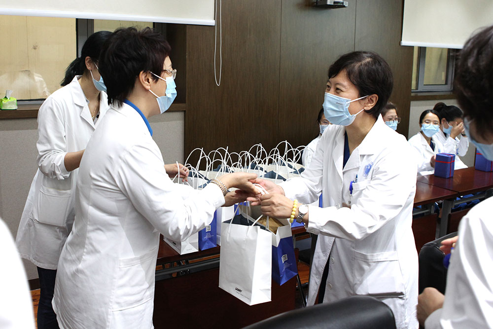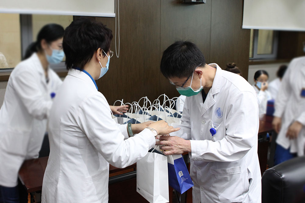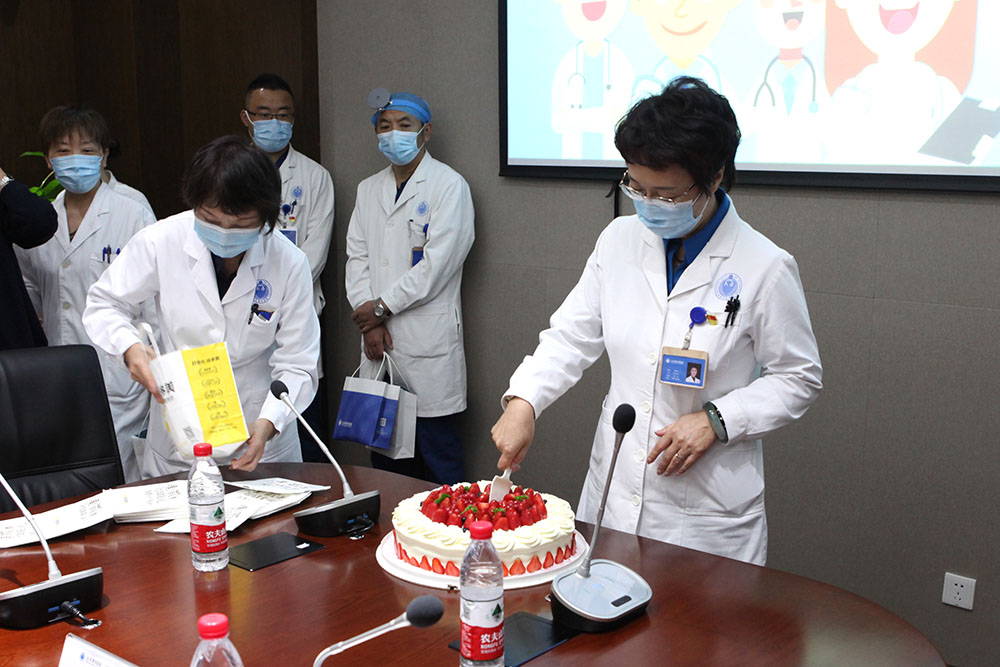 随后,郭佳忠院长为荣获“海淀区2020年先进医务工作者”的胡敏、刘方两位医生颁发奖状,并为所有医生颁发2020年度医师节纪念品,现场所有人在一片温馨中共同品尝节日蛋糕。