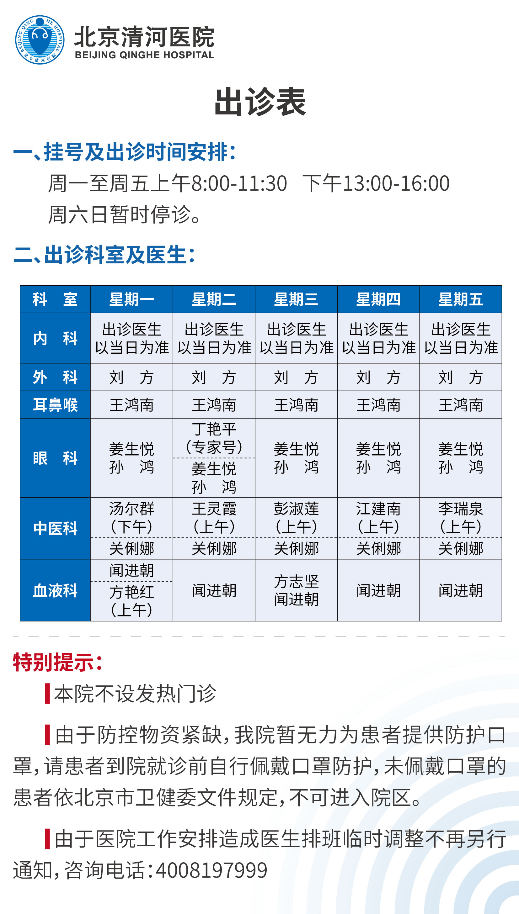 方志坚主任医师9月16日起将于北京清河医院血液科正式接诊