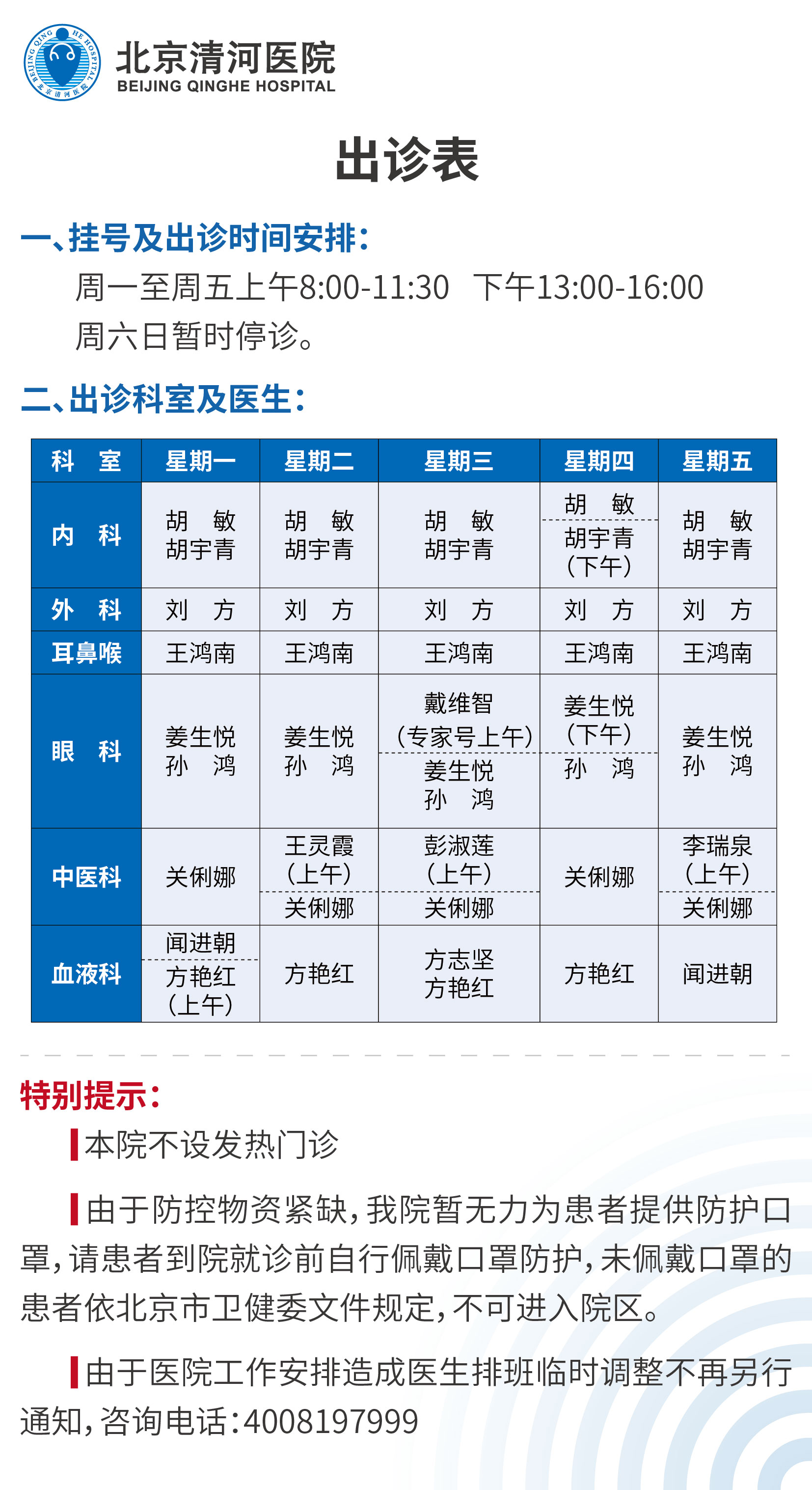 方志坚主任医师9月16日起将于北京清河医院血液科正式接诊