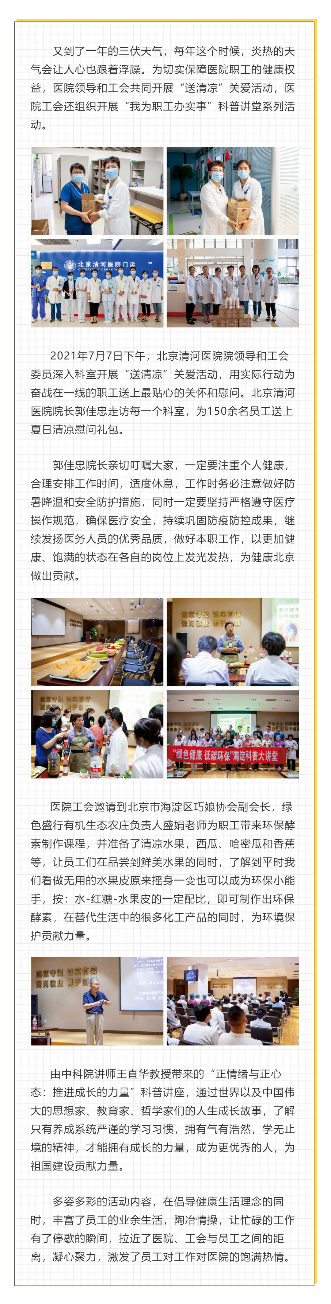 凝心聚力 爱在清河 ——北京清河医院开展“送清凉”、“我为职工办实事”活动