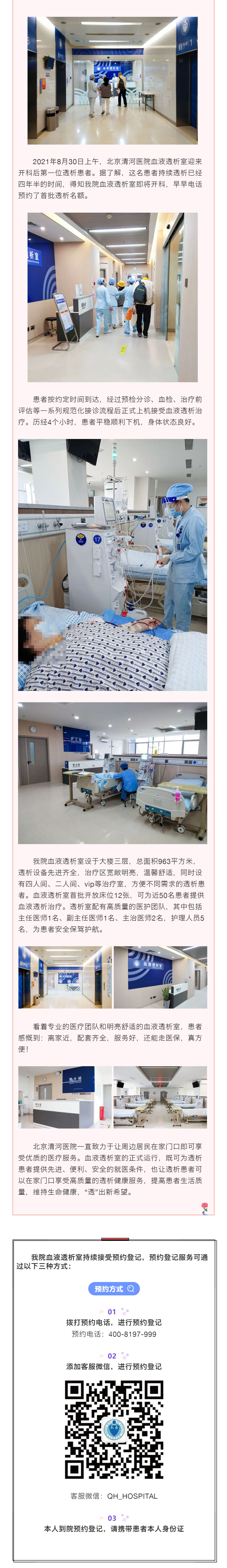 “透”出新希望——北京清河医院血液透析室迎来首位透析患者!!!