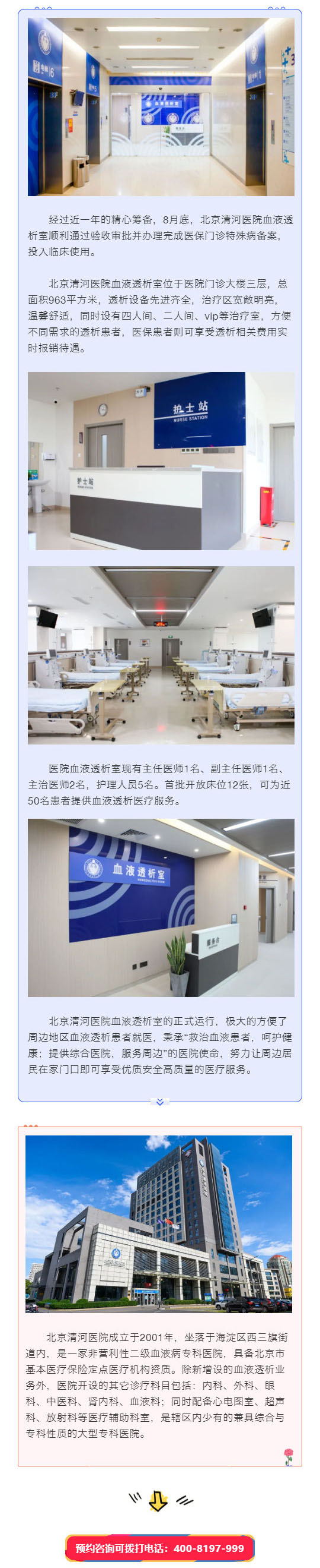 好消息——北京清河医院血液透析室正式开科,可接收医保特病患者!!!