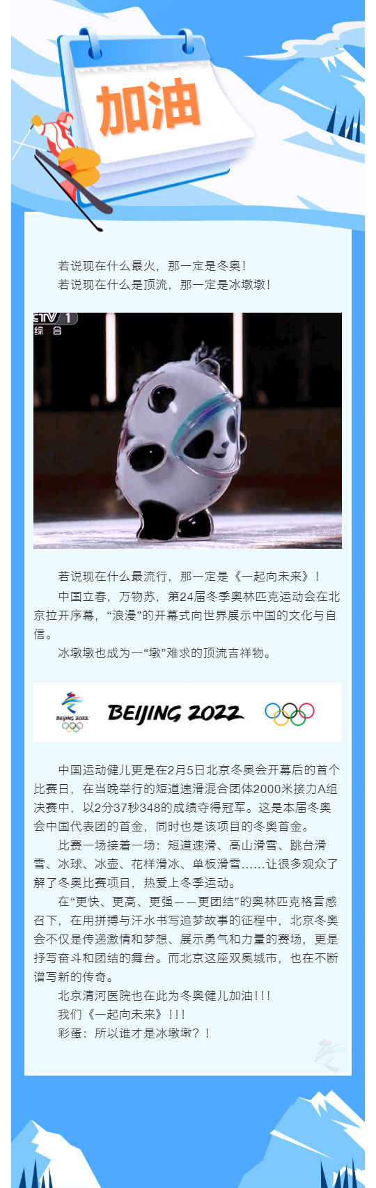 北京清河医院为冬奥健儿加油