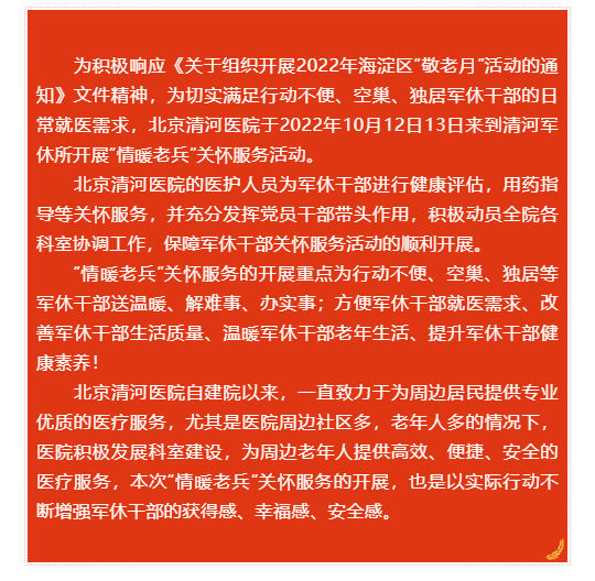 北京清河医院开展“情暖老兵”关怀服务活动