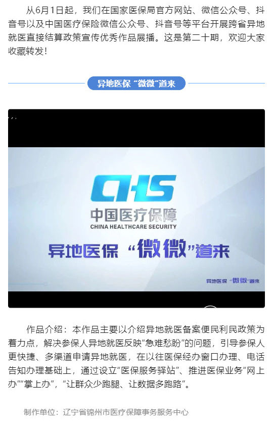 跨省异地就医直接结算政策宣传作品展播:异地医保 “微微”道来