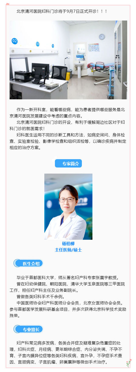医院动态 | 北京清河医院妇科门诊将于9月7日正式开诊