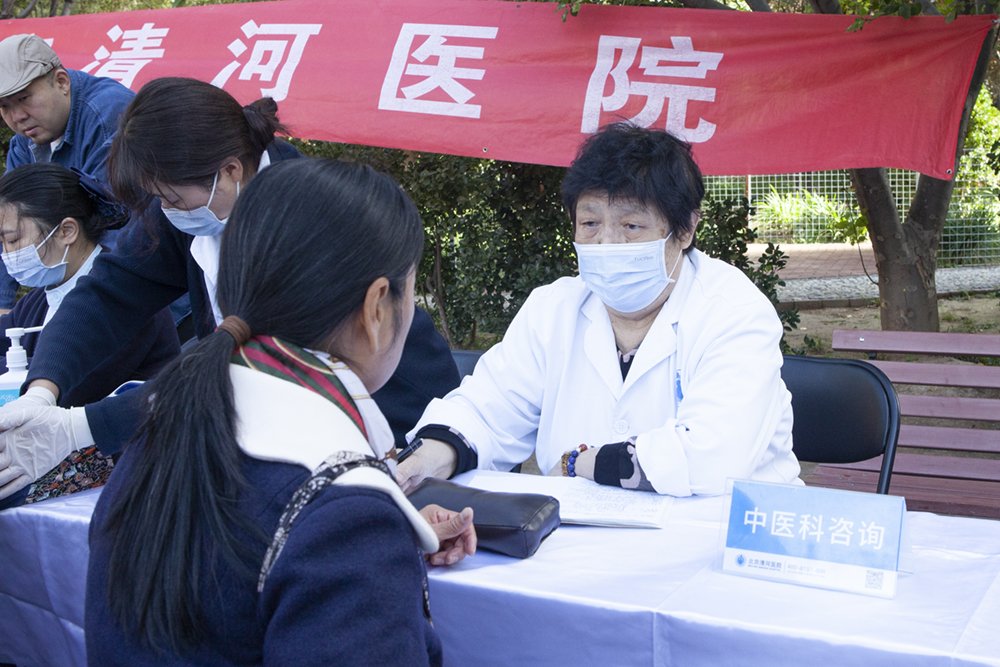 北京清河医院中医科医生通过望闻问切为居民讲解如何缓解已有症状的方式方法,温馨提醒居民,天气转凉,早晚温差大,日常养生的重要性。