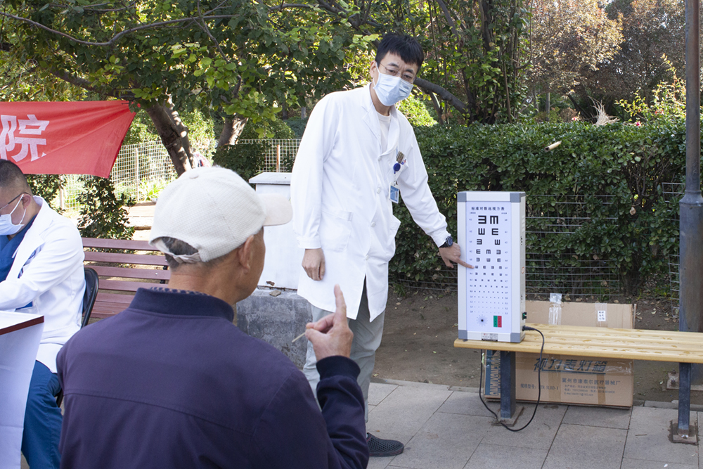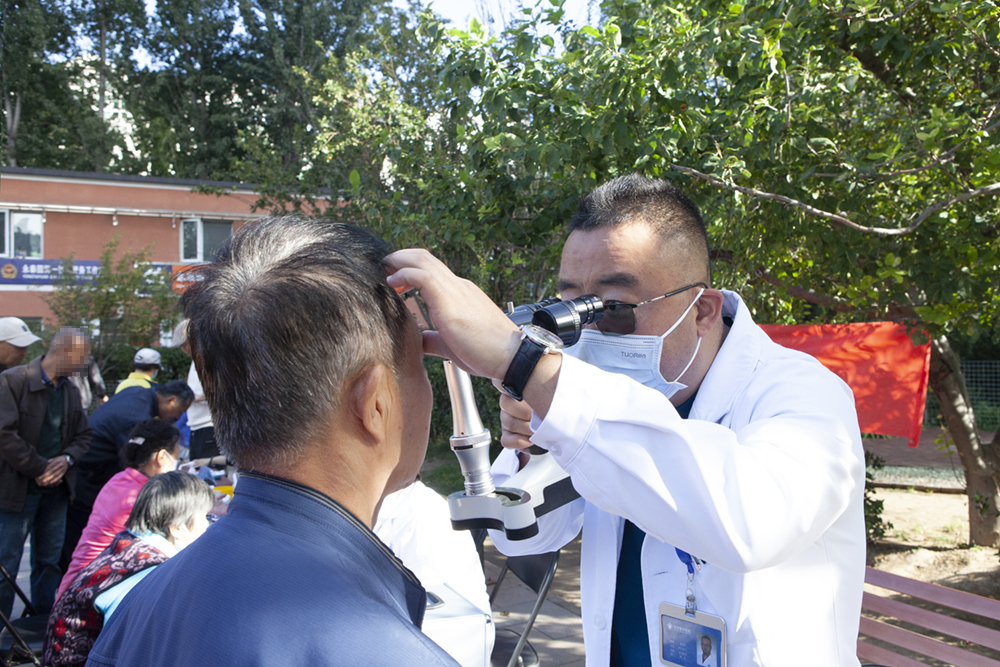 眼科医生带来基础检查设备,通过眼底检查、视力检查等,发现很多居民存在眼涩、眼干、视物不清,老年性白内障等眼部健康问题,希望居民能在日常生活中,关注眼健康,减少黑暗环境玩手机等不良生活习惯。