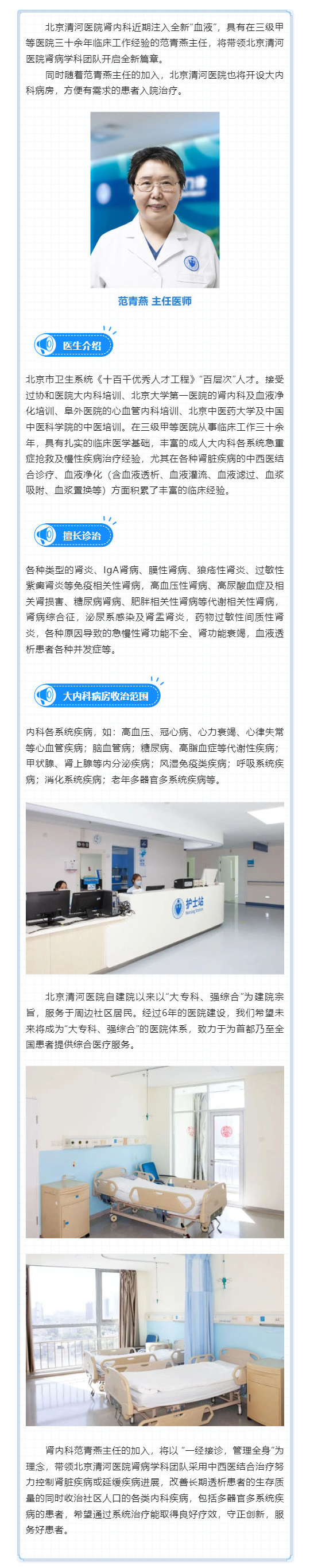 肾内主任范青燕开启北京清河医院大内科病房时代