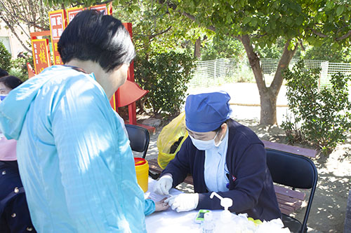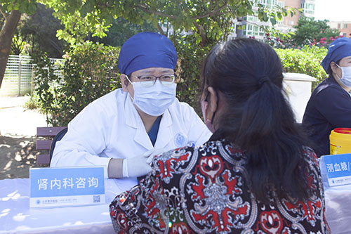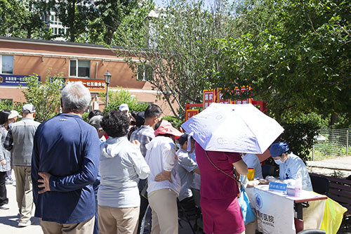 此外,北京清河医院的护士也为社区居民提供了免费的血压测量、血糖检测等基础健康检查服务。并为居民进行健康宣教,增加居民对慢性疾病知识的了解和认识。