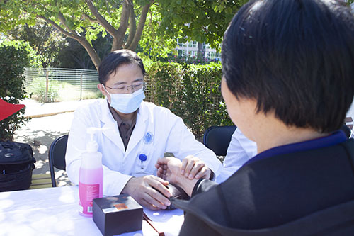 活动中,中医科的两位医生凭借丰富的经验和专业知识,现场为居民们进行把脉问诊,耐心细致的聆听他们的症状和困扰,并根据每位居民的身体状况,提供中医夏季养生建议,帮助他们更好的调理身心,保持健康。