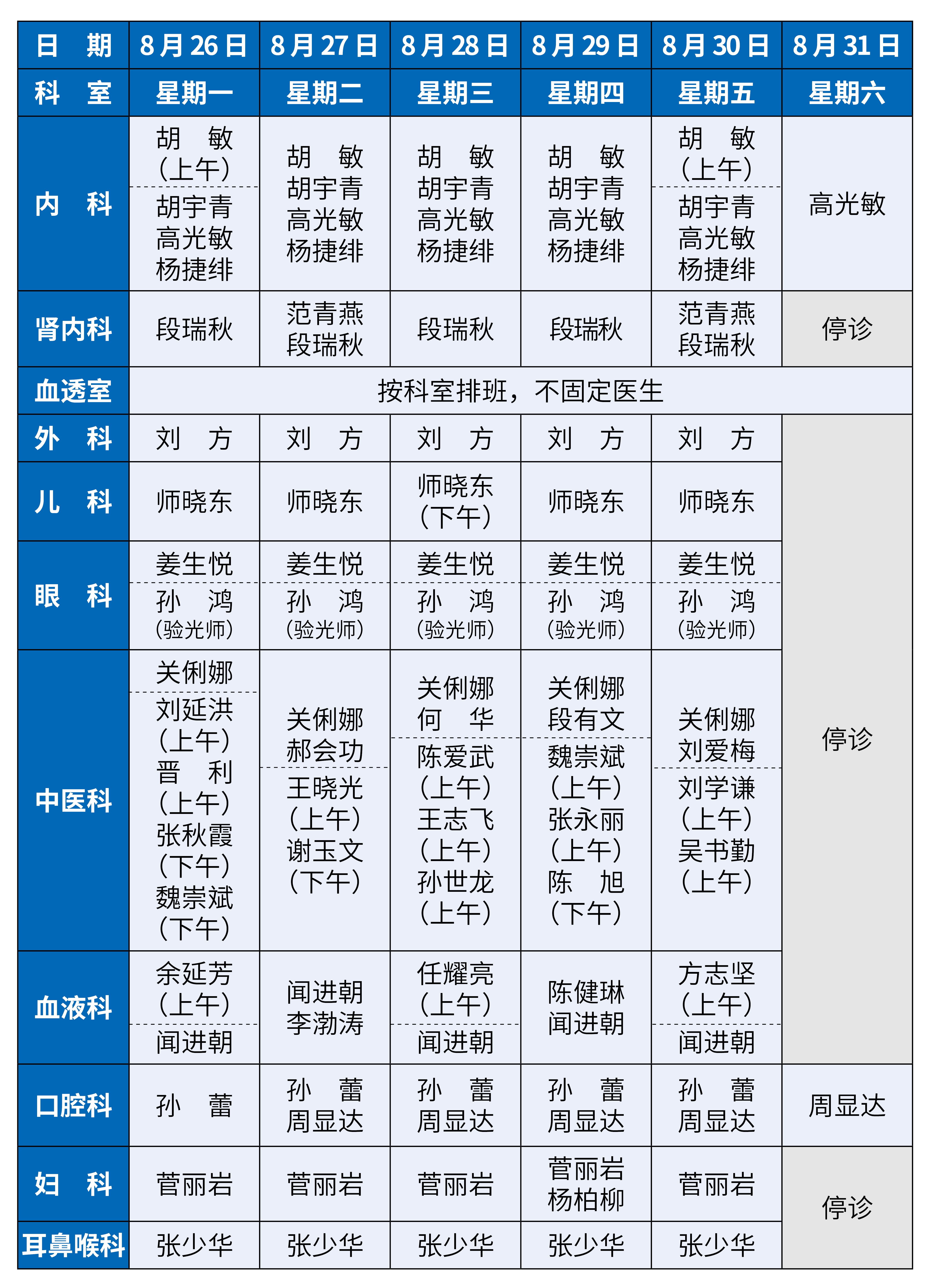 (2)由于医院工作安排造成医生排班临时调整不再另行通知,咨询电话:4008197999