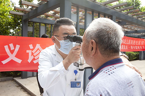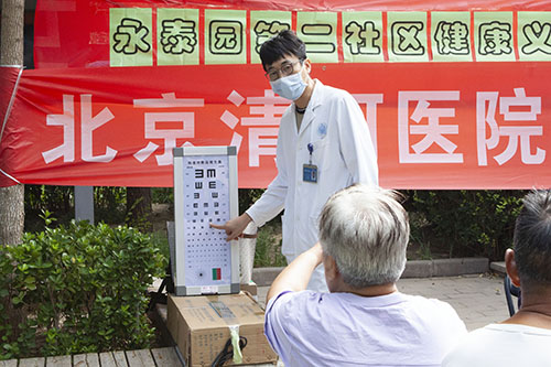 眼科医生利用专业的检查设备,为居民进行了视力检查和白内障等常见眼病的筛查,强调了日常用眼卫生和定期眼健康检查的重要性。