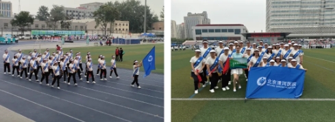开幕式上各参赛队伍依次入场。北京清河医院方阵凭借响亮口号、整齐步伐以及气势磅礴的红旗舞,受到主席台领导瞩目,并荣获“最佳参与奖”称号。北京清河医院由郭佳忠院长担任旗手,连同由职工代表组成的30人方阵一起向主席台走来,他们踏着整齐的步伐,迎着北京秋季的朝阳,舞动着整齐划一的旗舞,声音嘹亮的高喊出“走进清河 共筑健康 快乐运动 活力海淀”方阵口号,彰显出强大的团队凝聚力与高度的集体荣誉感。