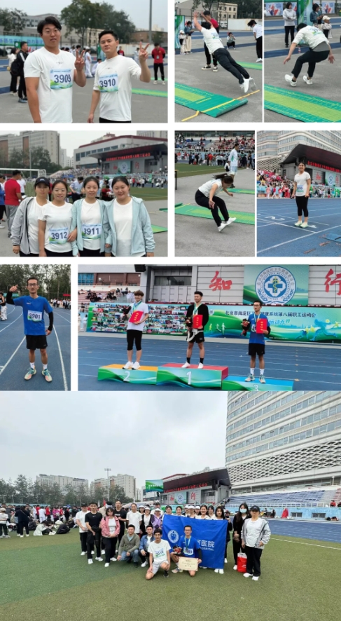 赛场上,北京清河医院的运动员们,奋勇拼搏,不断超越自我,展现出临床工作人员超高的体育竞技水平。男女混合4*100米接力赛中,运动员奋勇向前进入决赛名额;运动员们在比赛中不断追求个人成绩的突破:在男子100米决赛中,我院医生位庆虎夺得单项第三名的好成绩,赢得了北京清河医院在区卫生系统运动会上的首枚奖牌。