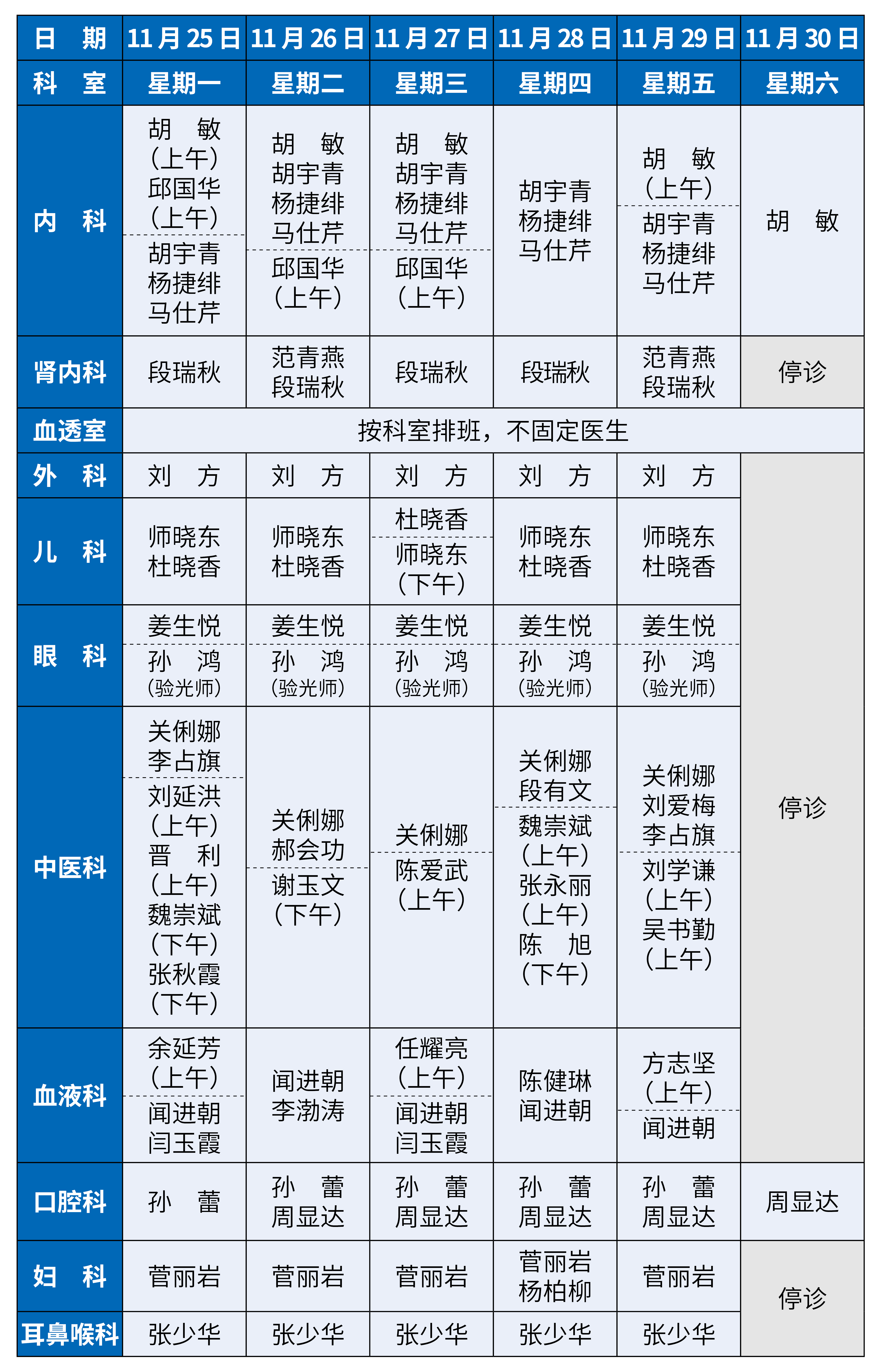 (2)由于医院工作安排造成医生排班临时调整不再另行通知,咨询电话:4008197999