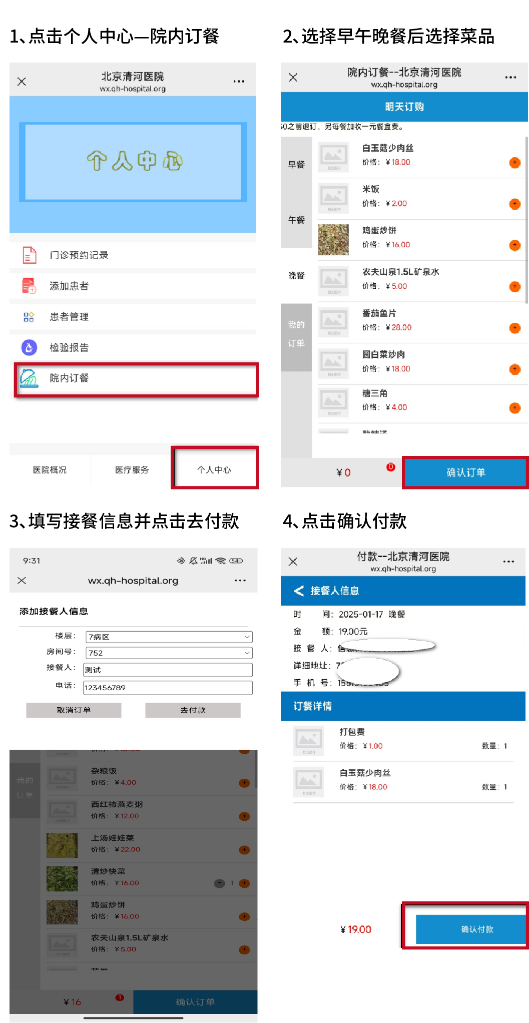为方便大家使用订餐服务,以下是具体的操作步骤:首先打开“北京清河医院服务号”