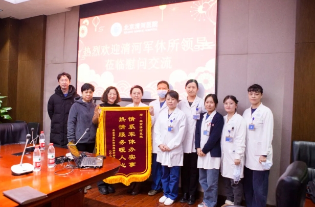 2025年1月15日,清河军休所副所长丁芳、政工科科长蔡洋、服管二科科长王艳杰来到北京清河医院,感谢这一年来北京清河医院医务工作者不辞辛劳、夜以继日的辛勤付出,他们特精心制作了锦旗赠予医院,以此表达内心深深的谢意。