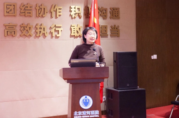 本次护理工作总结大会邀请到了我院特聘护理专家颜霞顾问。颜霞老师感谢护理团队在医院发展中做出的贡献,指出2024年是北京清河医院快速发展的一年。医院不仅在临床护理上取得显著进步,还在血液疾病护理领域的教学和科研方面展露头角。护理人员继续努力,设定可实现的目标,未来属于每一个为之奋斗的人。