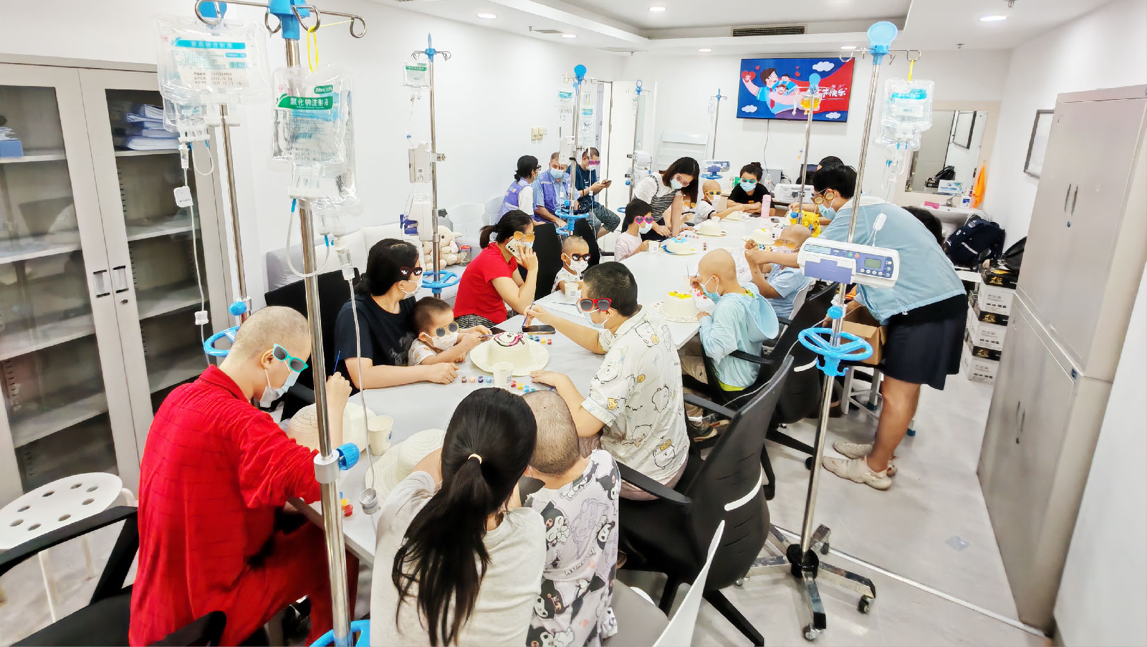 活动期间,孩子们全神贯注的盯着手中的画笔,眉头时而紧皱,时而舒展,病痛仿佛在这一刻被抛到了九霄云外,全身心沉浸在艺术创作带来的纯粹乐趣中。孩子们你一言我一语,彼此交流着创意,欢快的笑声如银铃般,充盈着整个示教室,让原本略显冰冷的空间,重焕生机与活力。