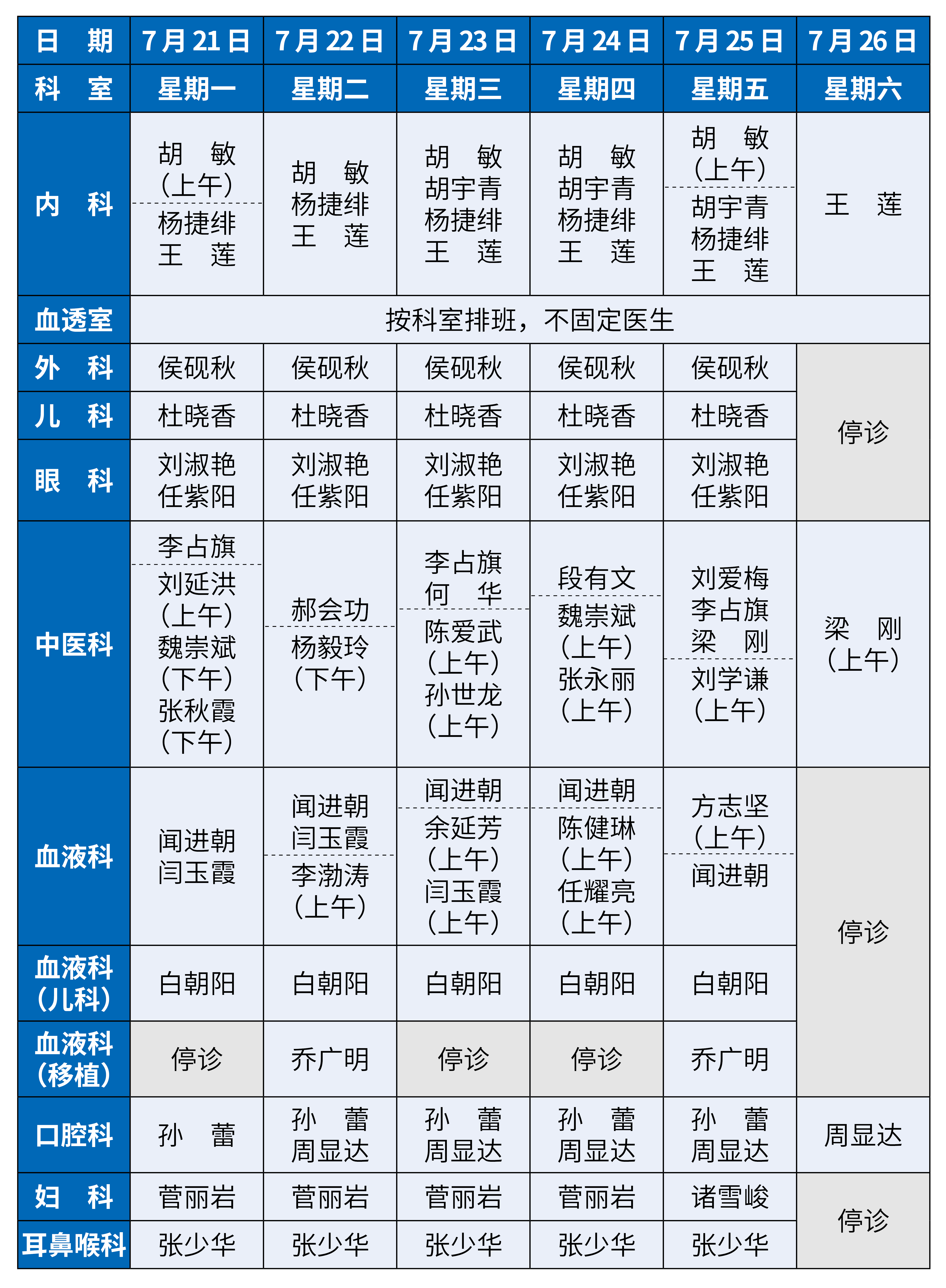 (2)由于医院工作安排造成医生排班临时调整不再另行通知,咨询电话:4008197999