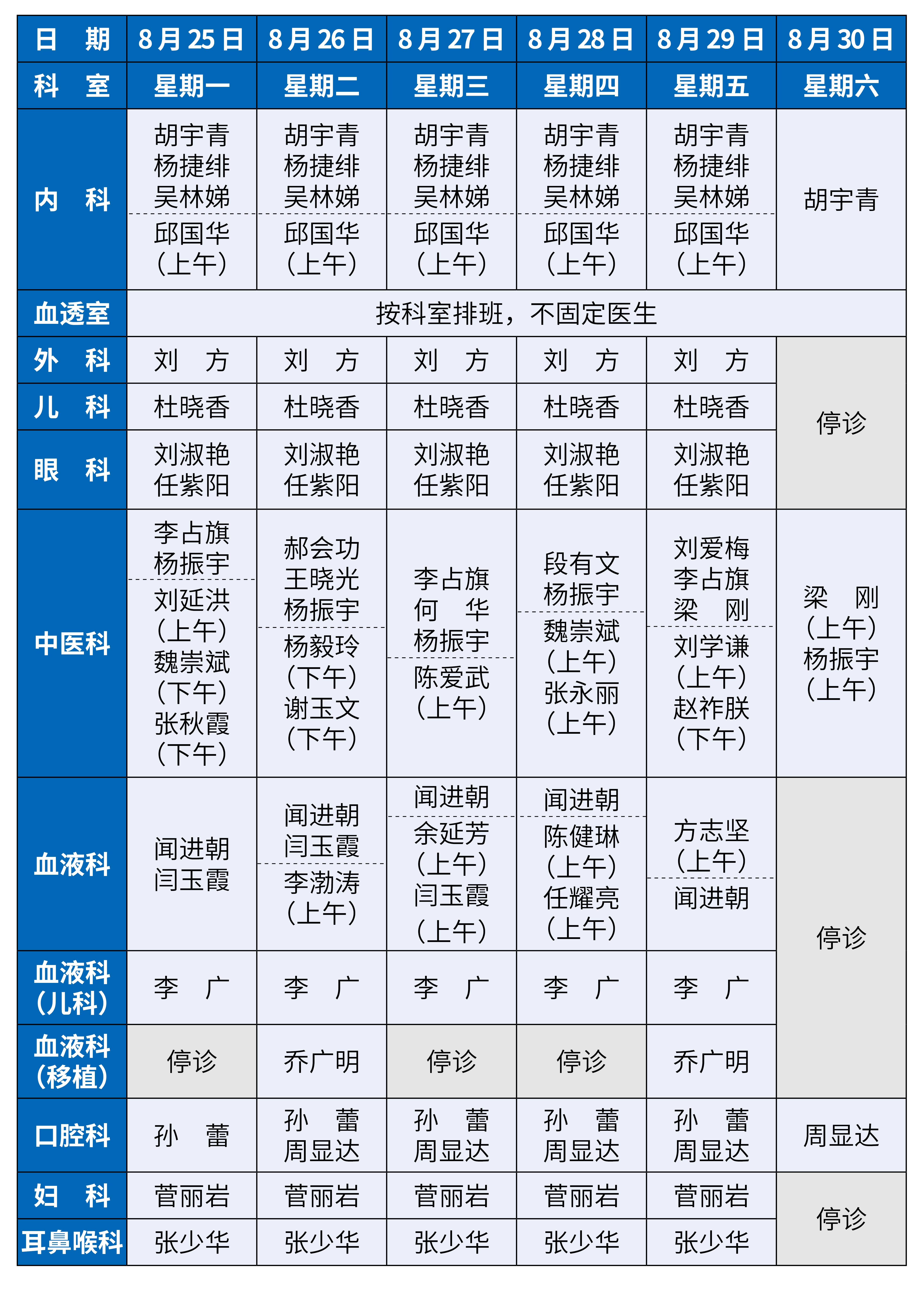 (2)由于医院工作安排造成医生排班临时调整不再另行通知,咨询电话:4008197999