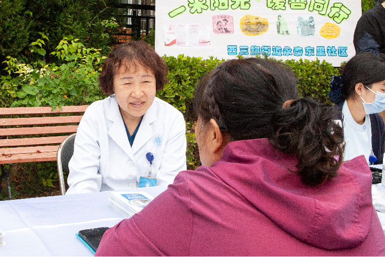 口腔科医生细致检查居民口腔健康状况,围绕龋齿预防、牙周病治疗、假牙护理等问题进行科普,帮助居民提升口腔健康认知。