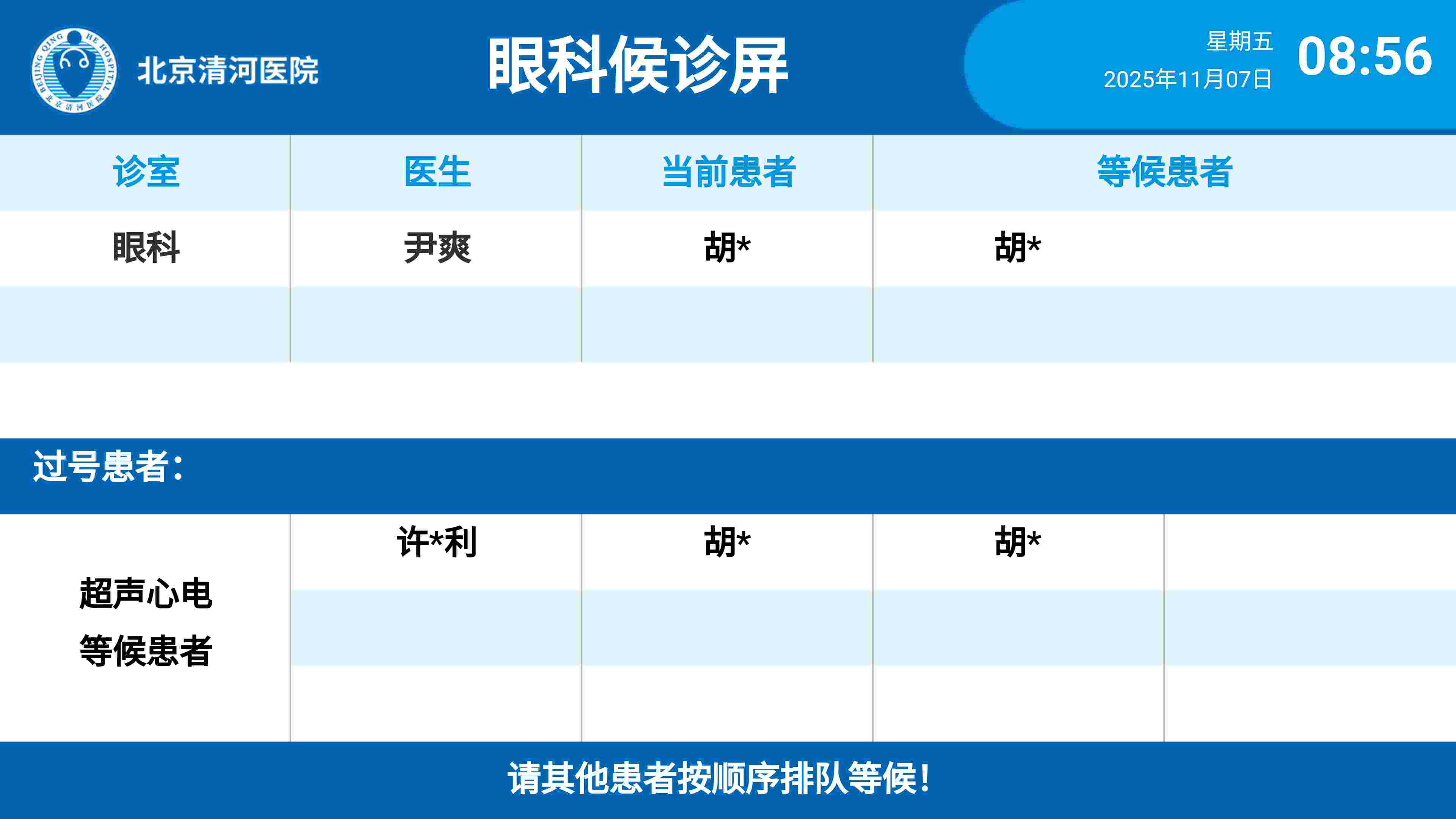 为提升就医体验,营造安静、有序、公平、透明的就诊环境,北京清河医院全新门诊分诊叫号系统已全面上线启用!此次系统升级是我院推进“智慧医院”建设、深化“以患者为中心”服务理念的重要举措,旨在通过技术赋能,从根本上改善就医环境,让您的看病过程更轻松、更从容。