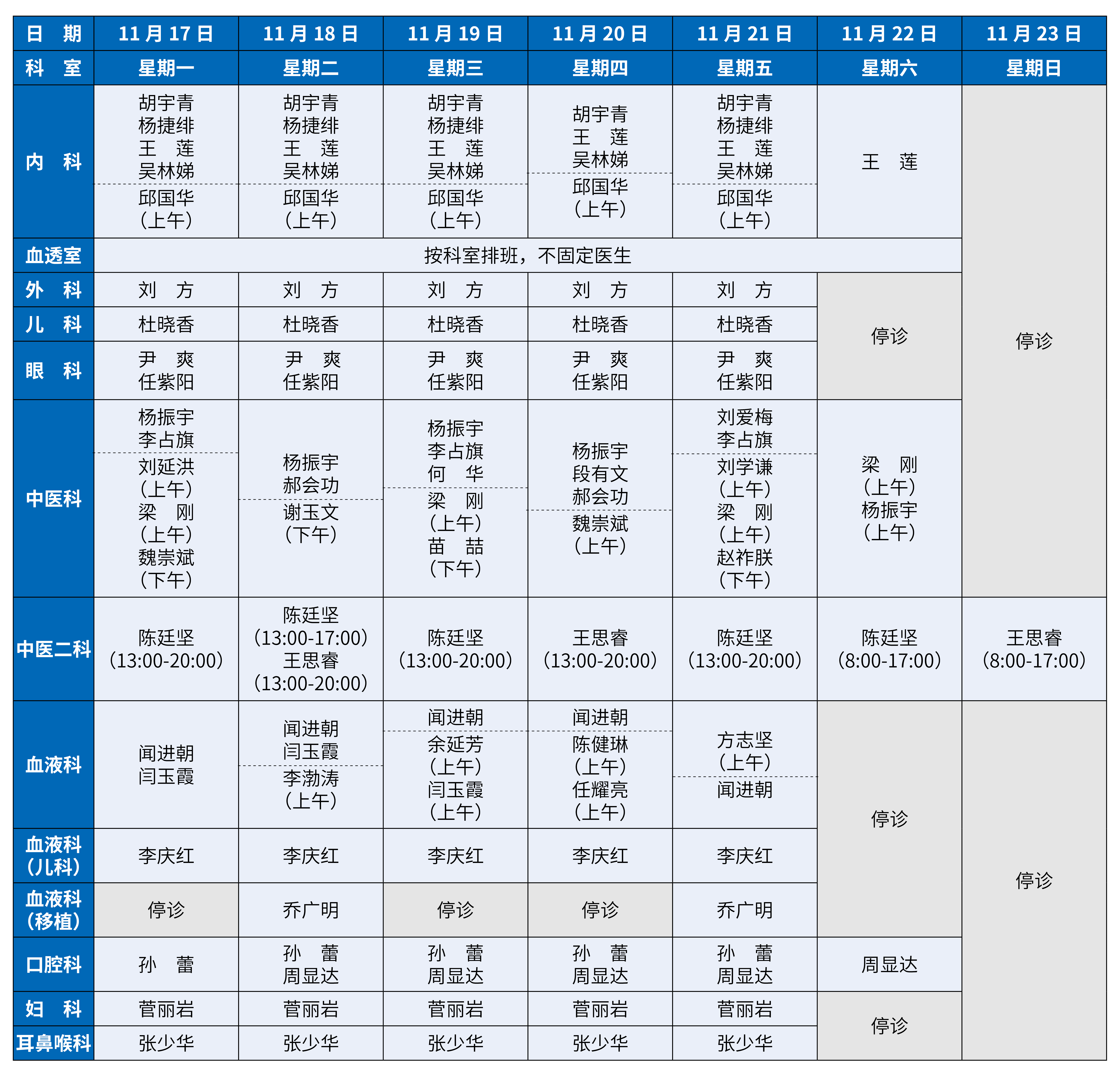 (2)由于医院工作安排造成医生排班临时调整不再另行通知,咨询电话:4008197999